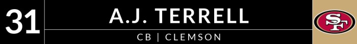 31. 49ERS — A.J. Terrell, CB, Clemson