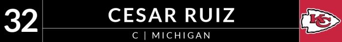 32. CHIEFS — Cesar Ruiz, C, Michigan