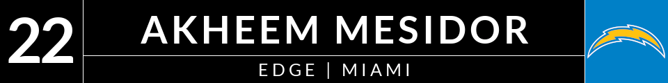 | 22 | Los Angeles Chargers | EDGE | Akheem Mesidor | Miami |