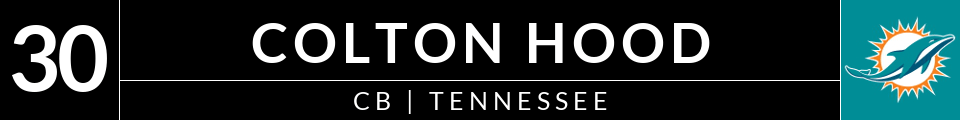 30) Miami Dolphins (via DEN) — Colton Hood, CB, Tennessee