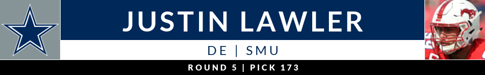 If the Cowboys are looking to deepen their defensive end rotation, there’s a chance that they don’t even have to leave Dallas. Equal parts run stopper and pass rusher, SMU’s Justin Lawler is a productive, high-motor defender who leaves everything on the field, and plays with the kind of power and relentlessness that would likely endear him to the defensive coaching staff.